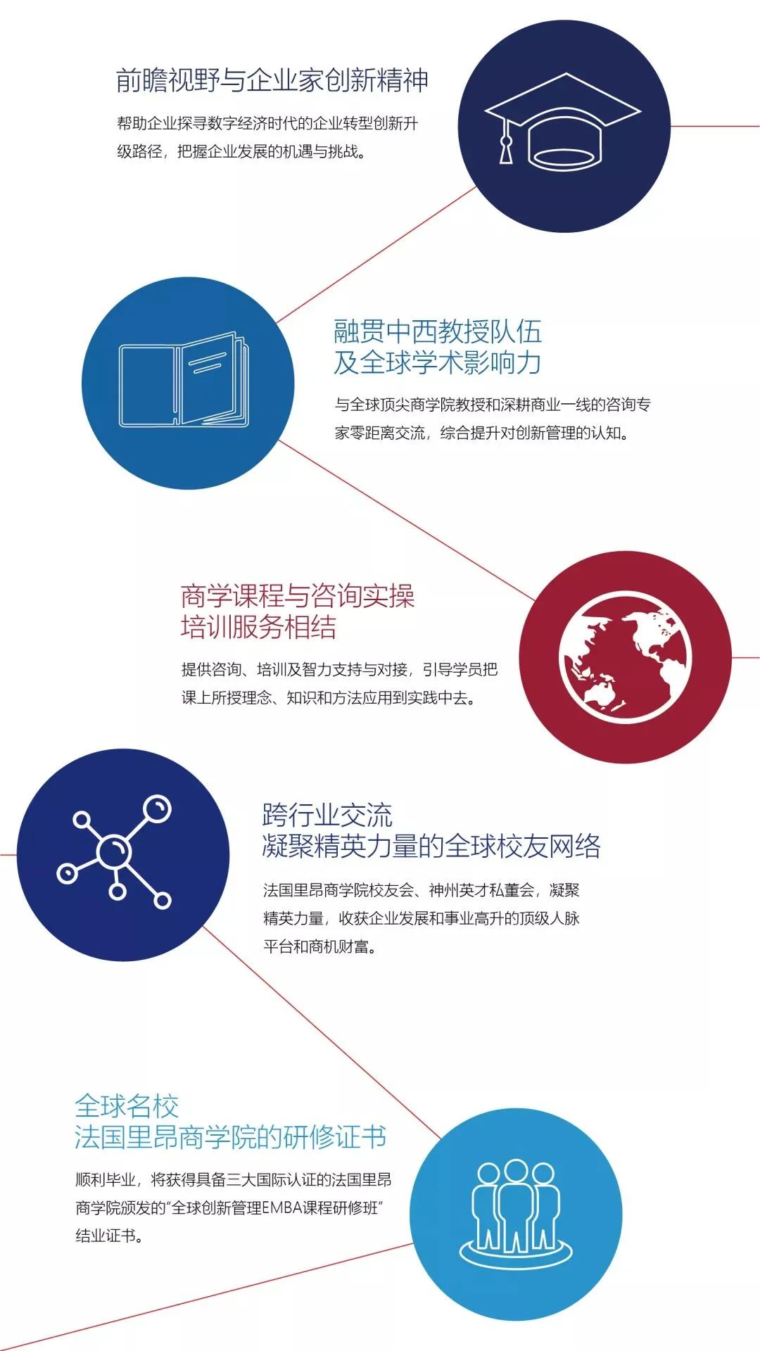 ![]() 法國里昂商學(xué)院-神州英才全球創(chuàng)新管理EMBA課程研修班,依托法國里昂商學(xué)院百年的經(jīng)濟(jì)及管理理論沉淀,憑借神州英才20余年專業(yè)歷練、萬余個(gè)咨詢培訓(xùn)實(shí)操案例經(jīng)驗(yàn);以國際前沿的管理思想,升華中國本土商業(yè)實(shí)踐,打造兼具全球廣度與中國深度的創(chuàng)新管理課程體系。